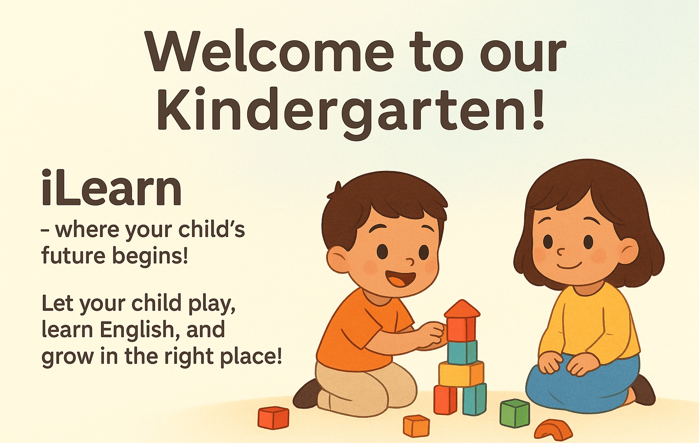 At iLearn Kindergarten, our goal is to create a safe, loving, and inspiring environment where children learn English, play, grow, and discover their unique gifts every day.